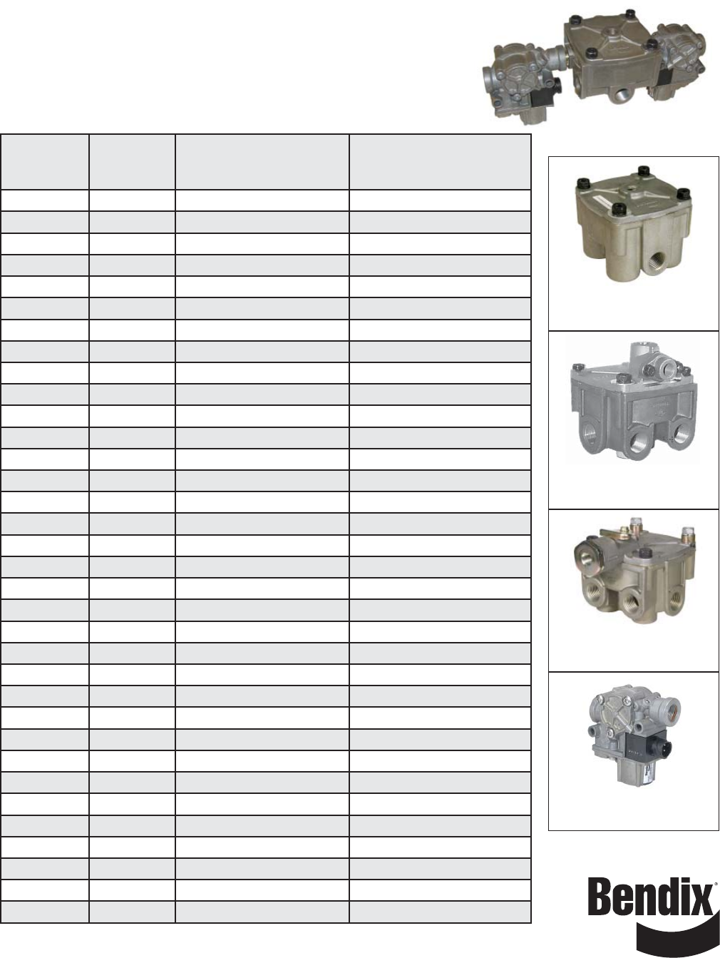 Part Number Relay Valve Part No. Other Valve